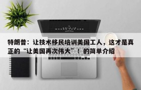 特朗普:让技术移民培训美国工人,这才是真正的“让美国再次伟大”!的简单介绍