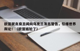 欧盟就贪腐丑闻向乌克兰发出警告,引爆世界舆论!(欧盟尴尬了)