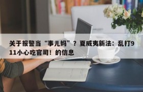 关于报警当“事儿妈”?夏威夷新法:乱打911小心吃官司!的信息