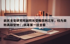 前民主党研究院副院长受贿获刑三年,权力腐败再敲警钟!/民革第一任主委