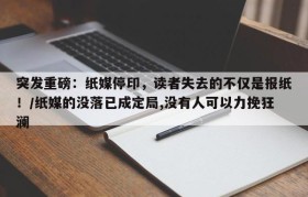 突发重磅:纸媒停印,读者失去的不仅是报纸!/纸媒的没落已成定局,没有人可以力挽狂澜