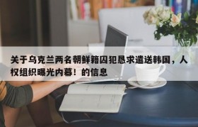 关于乌克兰两名朝鲜籍囚犯恳求遣送韩国,人权组织曝光内幕!的信息