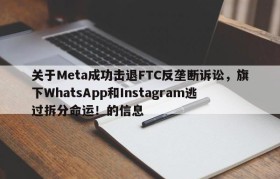 关于Meta成功击退FTC反垄断诉讼,旗下WhatsApp和Instagram逃过拆分命运!的信息