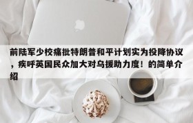 前陆军少校痛批特朗普和平计划实为投降协议,疾呼英国民众加大对乌援助力度!的简单介绍