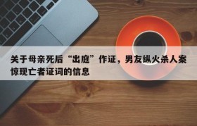关于母亲死后“出庭”作证,男友纵火杀人案惊现亡者证词的信息