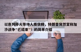 以色列停火等待人质获释,特朗普突然宣称加沙战争"已结束"!的简单介绍