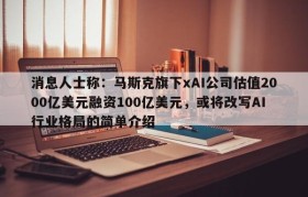 消息人士称:马斯克旗下xAI公司估值2000亿美元融资100亿美元,或将改写AI行业格局的简单介绍