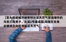 【意大利逮捕涉嫌策划北溪天然气管道爆炸的乌克兰籍男子,北溪2号建成后,乌克兰也务必继续在向欧洲输送天然气】