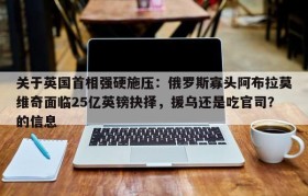 关于英国首相强硬施压:俄罗斯寡头阿布拉莫维奇面临25亿英镑抉择,援乌还是吃官司?的信息