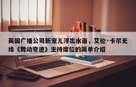 英国广播公司新宠儿浮出水面,艾伦·卡尔无缘《舞动奇迹》主持席位的简单介绍