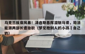 乌克兰反腐风暴!泽连斯基挥泪斩马谡,司法能源两部长遭撤职(梦见抱别人的小孩暍自己奶)