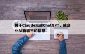 关于Claude反超ChatGPT,成企业AI新霸主的信息
