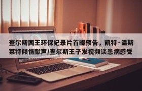查尔斯国王环保纪录片首曝预告,凯特·温斯莱特倾情献声/查尔斯王子发视频谈患病感受