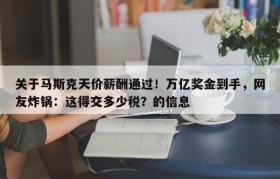 关于马斯克天价薪酬通过!万亿奖金到手,网友炸锅:这得交多少税?的信息