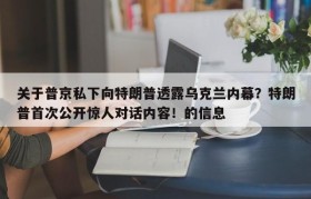 关于普京私下向特朗普透露乌克兰内幕?特朗普首次公开惊人对话内容!的信息