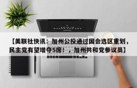 【美联社快讯:加州公投通过国会选区重划,民主党有望增夺5席!,加州共和党参议员】