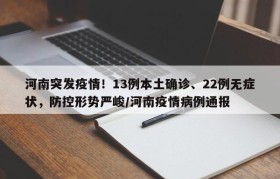 河南突发疫情!13例本土确诊、22例无症状,防控形势严峻/河南疫情病例通报