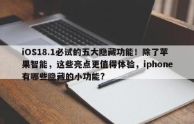 iOS18.1必试的五大隐藏功能!除了苹果智能,这些亮点更值得体验,iphone有哪些隐藏的小功能?