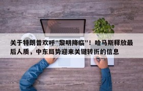 关于特朗普欢呼"黎明降临"!哈马斯释放最后人质,中东局势迎来关键转折的信息