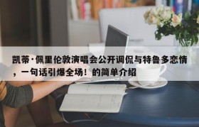 凯蒂·佩里伦敦演唱会公开调侃与特鲁多恋情,一句话引爆全场!的简单介绍