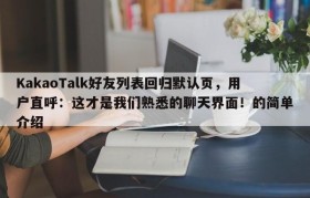 KakaoTalk好友列表回归默认页,用户直呼:这才是我们熟悉的聊天界面!的简单介绍