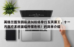 英格兰医生因薪资纠纷将举行五天罢工,十一月医疗系统面临停摆危机!的简单介绍