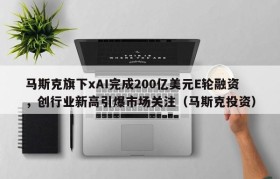 马斯克旗下xAI完成200亿美元E轮融资,创行业新高引爆市场关注(马斯克投资)