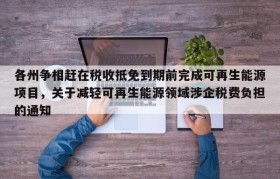 各州争相赶在税收抵免到期前完成可再生能源项目,关于减轻可再生能源领域涉企税费负担的通知