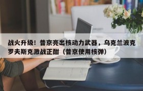 战火升级!普京亮出核动力武器,乌克兰波克罗夫斯克激战正酣(普京使用核弹)