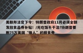 美联邦法官下令:特朗普政府11月必须全额发放食品券补贴!/光吃饭不干活?特朗普要断75万美国“懒人”的粮食券