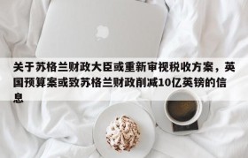 关于苏格兰财政大臣或重新审视税收方案,英国预算案或致苏格兰财政削减10亿英镑的信息