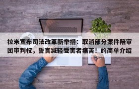 拉米宣布司法改革新举措:取消部分案件陪审团审判权,誓言减轻受害者痛苦!的简单介绍