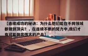 【连续成功的秘诀:为什么他们能在不同领域都做到顶尖?,在连续不断的努力中,我们才有可能做出伟大的产品】