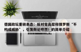 德国政坛重磅表态:反对党高层称俄罗斯“不构成威胁”,引发舆论哗然!的简单介绍
