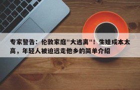 专家警告:伦敦家庭"大逃离"!生娃成本太高,年轻人被迫远走他乡的简单介绍