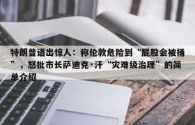 特朗普语出惊人:称伦敦危险到“屁股会被捅”,怒批市长萨迪克·汗“灾难级治理”的简单介绍