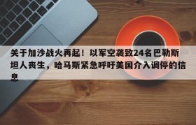 关于加沙战火再起!以军空袭致24名巴勒斯坦人丧生,哈马斯紧急呼吁美国介入调停的信息