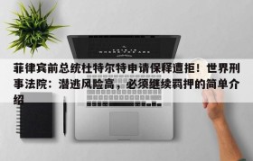 菲律宾前总统杜特尔特申请保释遭拒!世界刑事法院:潜逃风险高,必须继续羁押的简单介绍