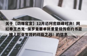 关于【劲爆官宣】12月迈阿密巅峰对决!网红拳王杰克·保罗竟要单挑重量级传奇约书亚,赌上职业生涯的终极之战!的信息