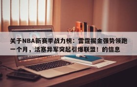 关于NBA新赛季战力榜:雷霆掘金强势领跑一个月,活塞异军突起引爆联盟!的信息
