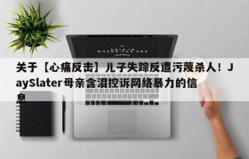 关于【心痛反击】儿子失踪反遭污蔑杀人!JaySlater母亲含泪控诉网络暴力的信息