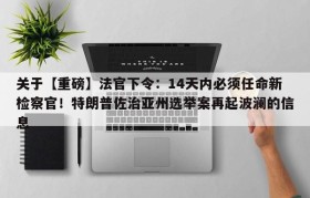 【重磅】法官下令:14天内必须任命新检察官!特朗普佐治亚州选举案再起波澜的简单介绍