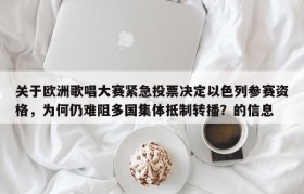 关于欧洲歌唱大赛紧急投票决定以色列参赛资格,为何仍难阻多国集体抵制转播?的信息