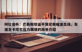 阿拉伯杯:巴勒斯坦逼平突尼斯瞄准出线,东道主卡塔尔压力骤增的简单介绍