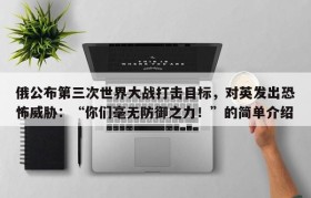 俄公布第三次世界大战打击目标,对英发出恐怖威胁:“你们毫无防御之力!”的简单介绍