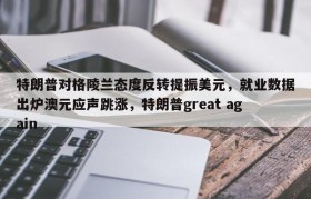 特朗普对格陵兰态度反转提振美元,就业数据出炉澳元应声跳涨,特朗普great again