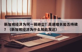 新加坡经济为何一骑绝尘?高速增长能否持续?(新加坡经济为什么如此发达)