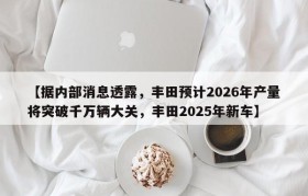 【据内部消息透露,丰田预计2026年产量将突破千万辆大关,丰田2025年新车】