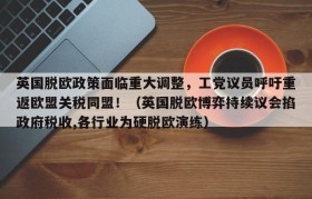 英国脱欧政策面临重大调整,工党议员呼吁重返欧盟关税同盟!(英国脱欧博弈持续议会掐政府税收,各行业为硬脱欧演练)