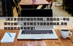 【英王查尔斯打破百年传统,圣诞后这一举动震惊全国!,查尔斯王子结束自我隔离,发视频鼓励民众怀抱希望】
